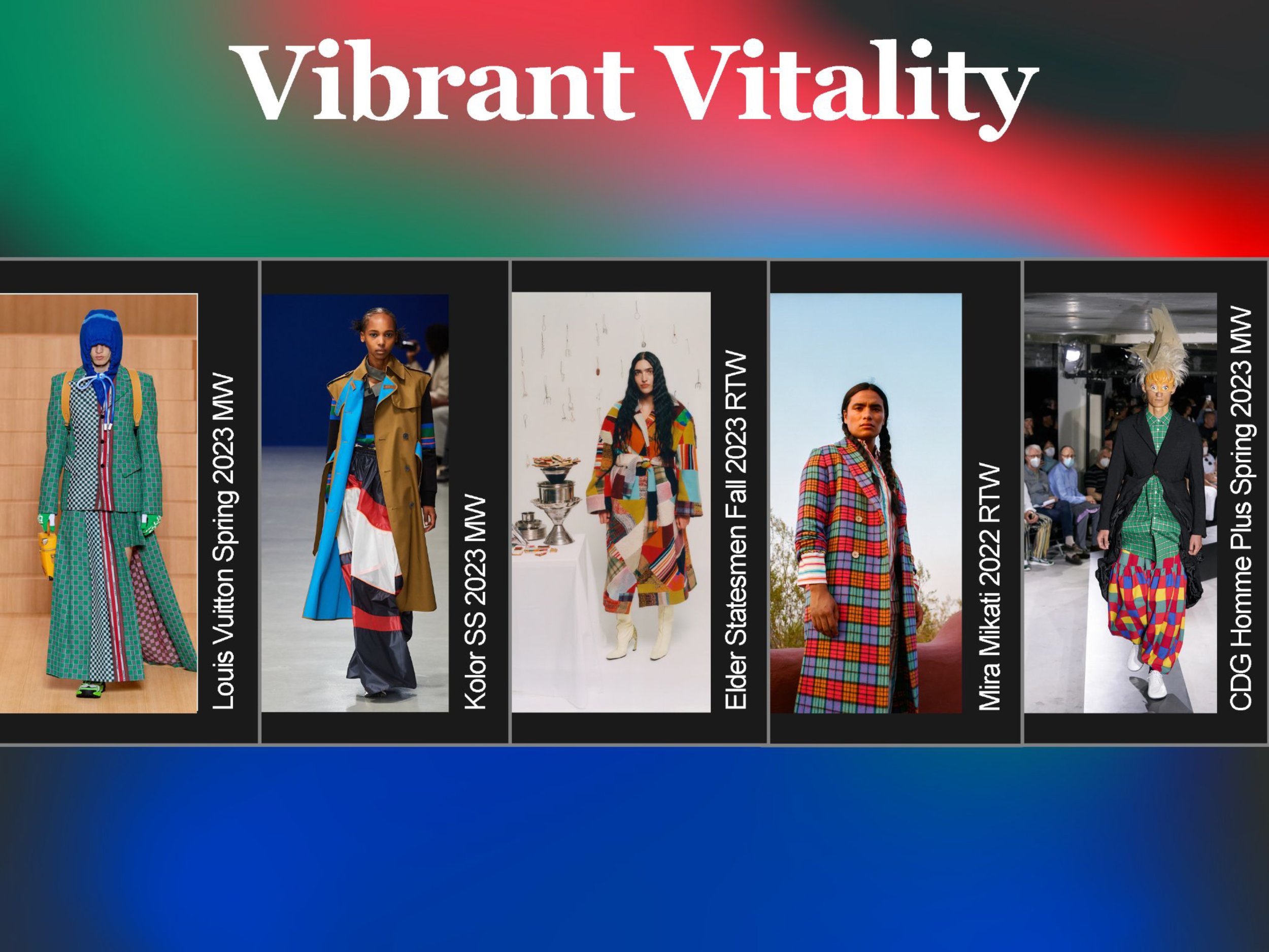 Vibrant Vitality embodies energy, life, and enthusiasm using a mixture of different patterns and color blocking, creating vibrant and lively pieces.